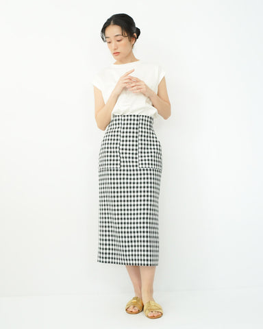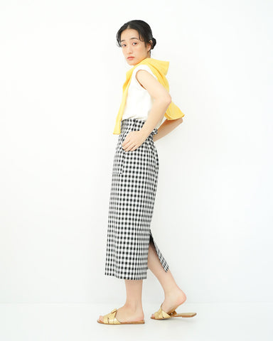 夏仕様のさわやかなギンガムチェック柄をトレンドライクに取り入れられるタイトスカートです。■Fablic